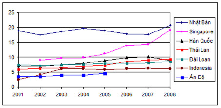 ![]() Giá điện cho một kWh tính bằng cent (Mỹ) ở một số nước và vùng lãnh thổ trong khu vực |