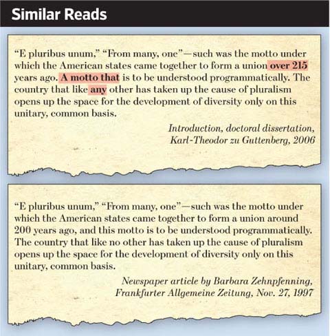 Dư luận quốc tế xôn xao về một quyết định chính trị xuất phát từ một vấn đề học thuật. Ông zu Guttenberg, một “ngôi sao” đang lên trong chính trường Đức, quyết định từ chức Bộ trưởng Quốc phòng sau khi có người chỉ ra rằng ông đã đạo văn trong luận án tiến sĩ luật. Ông zu Guttenberg từng theo học chính trị học và luật tại Đại học Bayreuth. Năm 2007 ông bảo vệ luận án tiến sĩ Luật, và hội đồng khoa bảng của Trường Đại học Bayreuth “cho điểm” luận án hạng summa cum laude (giống như hạng tối danh dự). Nhưng mới tháng qua, một giáo sư người Đức phát hiện nhiều dữ liệu trong luận án không phải của ông, mà chỉ lấy từ nguồn khác (kể cả báo chí) nhưng không đề nguồn. Ngay sau đó, cư dân mạng làm một dự án “nghiên cứu” luận án của ông, bằng cách so sánh trực tuyến. Qua dự án này, cư dân mạng phát hiện thấy trong luận án 475 trang, có đến 300 trang là đạo văn hay có dấu hiệu đạo văn. Thật khó tưởng tượng nổi qui mô đạo văn lớn như thế mà hội đồng khoa bảng không phát hiện!