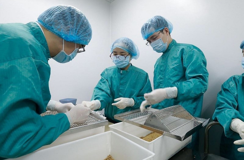 Các nhà nghiên cứu Vabiotech đang tiến hành lấy mẫu máu chuột để đánh giá kháng thể đáp ứng miễn dịch sau tiêm vaccine. Vabiotech là một trong những đơn vị đã nhận được tài trợ của VINIF cho nghiên cứu về vaccine phòng COVID-19. Ảnh: nhandan.
