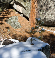 Bên dưới bốn bức tượng Tổng thống, vách đá và rừng thông phủ kín tuyết. Con đường lát gỗ len lỏi dưới vách núi, cho phép du khách tản bộ và ngắm nhìn vách đá với các gương mặt Tổng thống từ nhiều phía, nhiều góc độ, đôi lúc, xuyên qua cả các tán lá thông. Những bông tuyết cuối mùa xuân vẫn rơi nhè nhẹ, lấm tấm trên nền trời. Ven lối đi, những cành thông vươn ra, thậm chí, nhiều chỗ nhành thông như mọc lên từ những tảng đá to nơi chân núi, khiến người ta ngỡ ngàng vì sức sống của chúng…