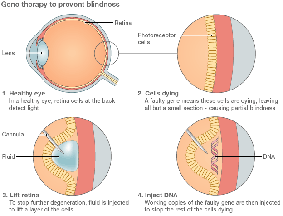 Khái niệm sử dụng liệu pháp gene trong chữa bệnh đã đựơc biết đến hơn 20 năm qua. Nhưng chưa có thử nghiệm thành công. Cho đến nay, dường như những kỹ thuật này bắt đầu được tiến hành, ít nhất là trong điều trị rối loạn thị lực. Theo giáo sư John Bell, Chủ tịch Academy of Medical Sciences, những thử nghiệm rất sớm này ở Oxford, London và Mỹ đã gợi ý rằng chứng rối loạn thị lực có thể được chữa trị trong “10 năm tới”. “Điều thú vị nhất trong tất cả mọi điều là có thể chữa trị loại bệnh này”, ông nói.