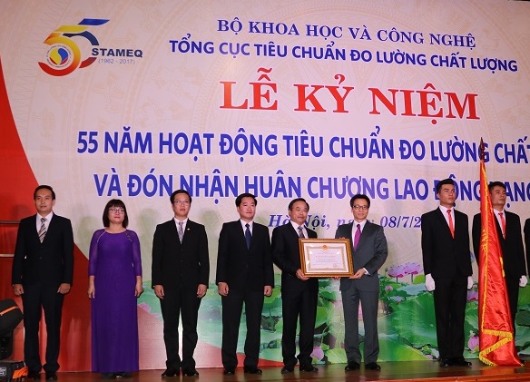 Phó Thủ tướng Vũ Đức Đam trao Huân chương Lao động hạng Nhất cho Tổng cục Tiêu chuẩn Đo lường Chất lượng trong lễ kỷ niệm 55 năm thành lập hoạt động tiêu chuẩn đo lường chất lượng của Việt Nam.