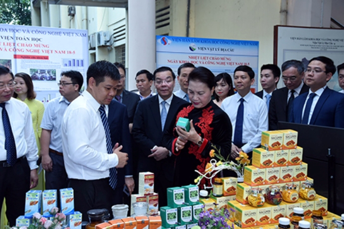 Chủ tịch Quốc hội Nguyễn Thị Kim Ngân thăm gian trưng bày của Viện Hàn lâm Khoa học và Công nghệ Việt Nam. Nguồn: daibieunhandan.vn