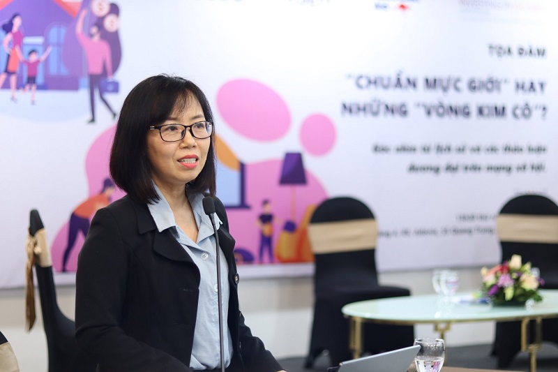 PGS.TS Phạm Quỳnh Phương tại tọa đàm “’Chuẩn mực giới’ hay những ‘vòng kim cô’? – Góc nhìn từ lịch sử và các thảo luận đương đại trên mạng xã hội”. Ảnh: VGEM
