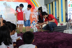 Các em học sinh thích thú với Robot Nao của Học viện Anh Ngữ EQuest