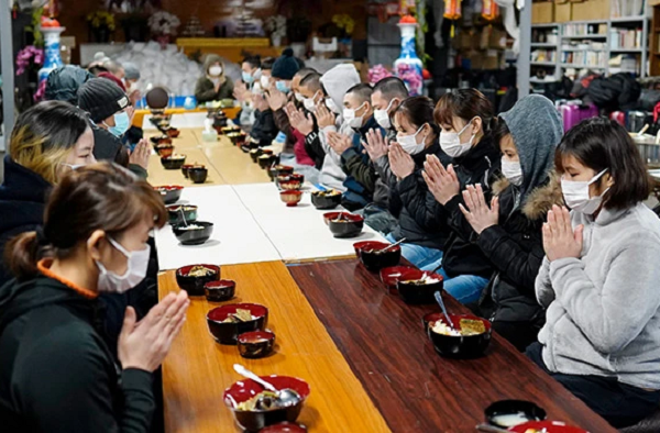 Bữa cơm của những người mắc kẹt do Covid-19 ở Đại Ân tự (Daionji), TP.Honjo (tỉnh Saitama, Nhật Bản). Nguồn: Chụp màn hình của tờ The Asahi Shimbun