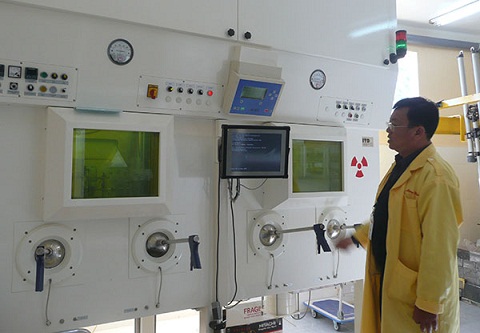 Xử lý các chất đồng vị phóng xạ tại Trung tâm Nghiên cứu điều chế Đồng vị, dược chất phóng xạ, Viện Nghiên cứu hạt nhân Đà Lạt. Nguồn: Báo Lâm Đồng
