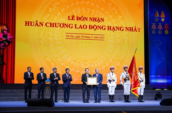 Thay mặt lãnh đạo Đảng, Nhà nước, Thủ tướng trao Huân chương Lao động hạng Nhất cho Bộ Khoa học và Công nghệ.
