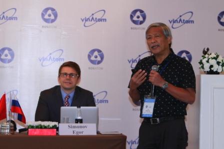 Ông A.Semiletov, kỹ sư trưởng Viện thiết kế Atomproekt trình bày về tính tương thích và độ an toàn đối với môi trường của các lò phản ứng công nghệ VVER thế hệ mới của Nga. Loại lò phản ứng này sẽ được lắp đặt tại Ninh Thuận 1, nhà máy điện hạt nhân đầu tiên của Việt Nam do Rosatom hợp tác xây dựng.