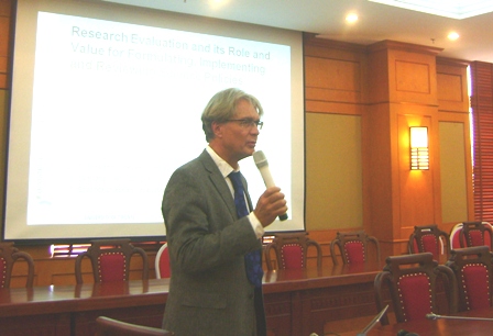 Trong khuôn khổ nhiệm vụ hợp tác quốc tế về khoa học và công nghệ (KH&CN) theo nghị định thư “Nghiên cứu, tiếp thu kinh nghiệm của CHLB Đức để nâng cao năng lực đánh giá các tổ chức và hoạt động KH&CN ở Việt Nam”, Bộ KH&CN Việt Nam và Bộ Nghiên cứu và giáo dục Đức đã đồng tài trợ tổ chức khóa tập huấn về “Đánh giá nghiên cứu” lần thứ nhất tại Hà Nội từ ngày 18 tới 20 tháng 9. Viện Đánh giá khoa học và định giá công nghệ (VISTEC) là đơn vị đứng ra tổ chức. Khóa tập huấn nhằm giúp các nhà quản lý và hoạch định chính sách KH&CN, cán bộ phụ trách công tác KH&CN tại các tổ chức nghiên cứu của Việt Nam nắm được những nội dung cơ bản về đánh giá nghiên cứu.
