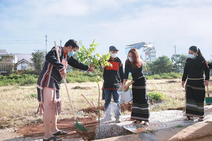 Người Ê-đê cùng tham gia Tết trồng cây tại Thành phố Cà phê