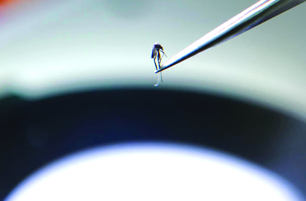 Nhà nghiên cứu kiểm tra một con muỗi trong phòng thí nghiệm ở Viện Nha Trang ngày 21/8. Nguồn: AFP-JIJI.