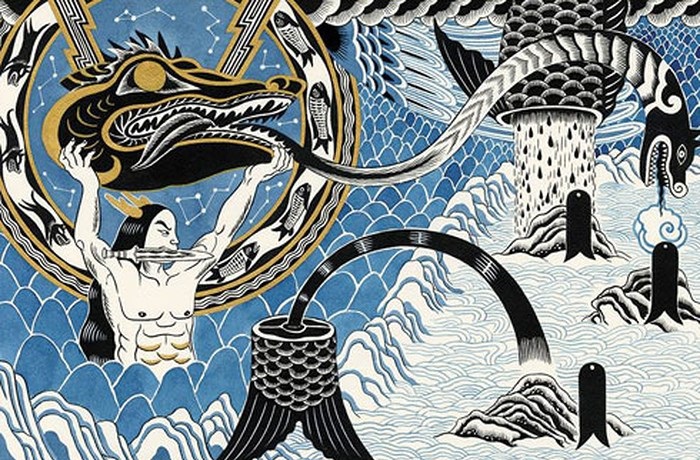 Tranh Lạc Long Quân chém Ngư tinh trong truyện Lĩnh Nam chích quái, Tạ Huy Long vẽ, NXB Kim Đồng, 2017.