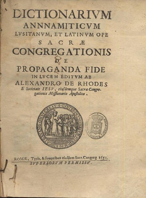 Trang bìa Tự điển Việt–Bồ–La Dictionarium Annamiticum Lusitanum et Latinum ấn bản 1651. Ảnh: Wiki