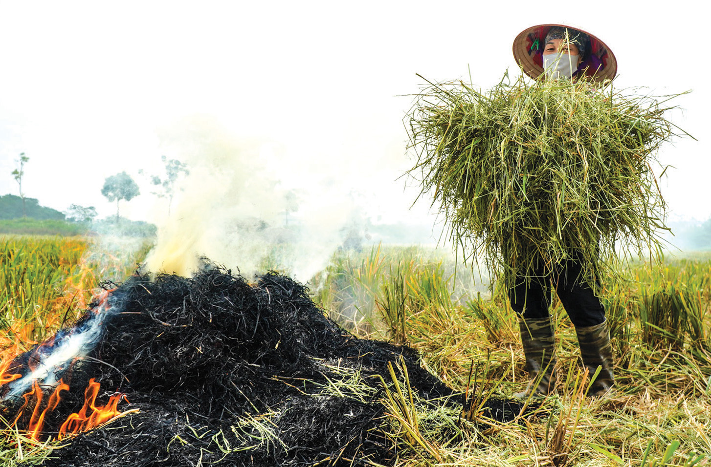 Hiện tại chúng ta đều biết rằng, việc đốt rơm rạ ngoài đồng ruộng sẽ ảnh hưởng đến chất lượng không khí bởi nó sẽ phát thải vào môi trường một lượng lớn carbon đen, khí thải… Tuy nhiên, các nhà nghiên cứu Việt Nam chưa thể định lượng được cụ thể ảnh hưởng của mỗi đợt đốt rơm rạ đó lên chất lượng không khí và các nhà quản lý cũng chưa thể có được con số kiểm kê chính xác về sự đóng góp ô nhiễm vào không khí của hoạt động đốt rơm rạ. Nguyên nhân là dù từ trước đến nay, đã có nhiều công trình nghiên cứu về tác động của việc đốt rơm rạ nhưng phần nhiều đều có sai số nhất định do phụ thuộc vào hệ số phát thải của nước ngoài. Thông thường, mỗi quốc gia với những điều kiện gieo trồng, khí hậu, giống lúa khác nhau… nên hệ số phát thải từ đốt rơm rạ đều khác nhau nên việc kế thừa khó đem lại kết quả chính xác.