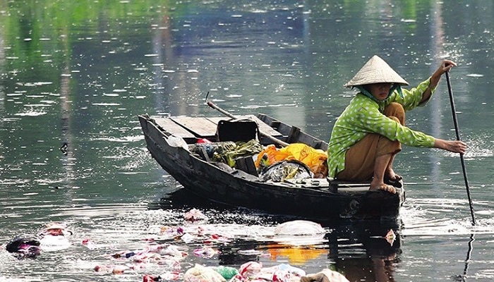 Ô nhiễm nhựa trên các tuyến sông Mekong ở Việt Nam. Ảnh: vietnambusiness