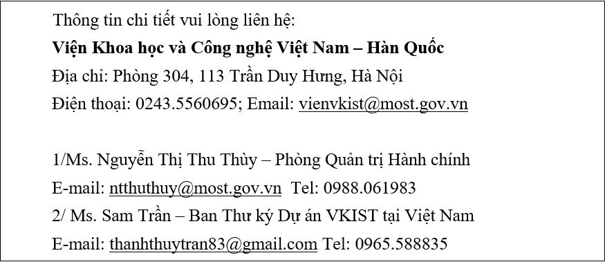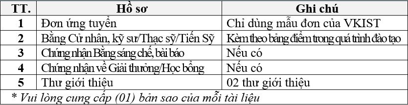 – Đơn ứng tuyển có thể được tải về tại đây, và nộp các tài liệu liên quan đến Email: vienvkist@most.gov.vn