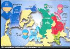 Sức mạnh, chúng ta không được quên, trước hết là sức mạnh quân sự. Bản đồ này làm sáng tỏ bán cầu Bắc vì một lý do rất đơn giản: tất cả các cường quốc quân sự đều tập trung ở đó. Hàm chứa nhiều thông tin với những con số, bản đồ này thu hút sự chú ý bằng số các đầu lính, cũng như các chi phí quân sự tính theo đầu người dân. Rõ ràng, đơn giản, hiệu quả là ba tính chất hàng đầu của bản đồ thời kỳ này.