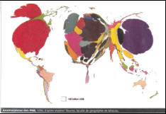 Còn về phương pháp hình méo, nếu diện tích tỷ lệ với dân số thì các nước phương Nam vẫn được lợi. Nhưng nếu diện tích tỷ lệ với GDP thì ba người khổng lồ: Mỹ, Nhật Bản và Châu Âu mới là những người vui mừng.