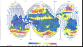 Hệ số trao đổi khí CO2 giữa khí quyển và đại dương, đo bằng bức xạ kế vệ tinh SSM/I (tháng 2.1988). Ảnh 13