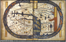 Trong bản đồ thế kỷ XI này chúng ta thấy được sơ đồ ban đầu nhưng đã bị thay đổi đáng kể và được làm phong phú thêm. Phía Đông, Oriens, trên cao; một Địa Trung hải rộng lớn đầy các đảo; sông Nil ở Châu Phi thầm lặng hơn. Hình oval gợi ý rằng nó chỉ biểu diễn một phần Trái Đất. Ở phía Đông, từ đó sinh ra ánh sáng của Chúa, là Thiên đường Trái đất: Eva, bên cạnh Adam, hái táo của cây tri thức trên đó có một con rắn quấn quanh. Từ cái thiên đường không tiếp cận được này, bao quanh là các dãy núi hình răng cưa, có bốn dòng sống làm phì nhiêu đất đai: sông Hằng, Indus, Tigris và Euphrate. Nằm gần chính giữa bản đồ là Jérusalem và đền thờ Jedea. Bên trên Hồng Hải, bản đồ cũng vạch ra các giới hạn của các vùng đất có người sinh sống: một lục địa vô danh, “nằm dưới ánh nắng mặt trời gay gắt, ở đó có các sinh vật cực đoan”. Tại Indi, phía nam của Eden (như vậy là ở bên phải), có đá quý, voi, vàng, bạc và hạt tiêu. Xa hơn về phía Đông, cuối bản đồ là Gens Seres, dân tơ lụa. Như vậy Châu Á không hoàn toàn vô danh. Nhưng ảnh hưởng văn hóa lớn nhất vẫn là của Tây Ban Nha Hồi giáo: những hình vẽ núi, đại dương, suối, thuyền, cá, thành phố và các công trình điển hình của nghệ thuật Mozarabe, nghệ thuật của những người Thiên Chúa giáo còn lại trong bán đảo Iberia bị Hồi giáo hóa.