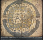 Không, Trung Cổ Châu Âu đã không phủ nhận tính chất cầu của Trái đất, được chỉ rõ ngay từ thế kỷ VII bằng các từ như globus hay sphera. Không, các bài học của các tác giả cổ đã không bị mất hoàn toàn. Mà chúng đã được sàng lọc qua sự diễn giải Thiên chúa giáo thời đó. Nền của bản đồ Trung đại được thể hiện bằng hai chữ “T trong O”, Orbis Terranrum tròn của những người Roma được phân chi bằng chữ T. T được cấu thành từ Địa Trung Hải, sông Nil và Don, ngăn cách ba lục địa do ba con trai của Noé làm chủ sau Đại hồng thủy: Ở Châu Á có Sem, Châu Phi có Cham và Châu Âu có Japhet.