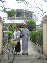 Khi tôi mở mắt, bỗng có tiếng reo mừng từ trong liêu: “A, cô Kim Lan, A Di Ðà Phật!”, tôi nhìn kỹ hai vị sư trẻ vừa từ trong liêu bước ra chánh điện, còn ngỡ ngàng chưa nhận ra ai thì hai Thầy đã tự giới thiệu là tăng sinh khoá II của HọcViện Phật học, nơi tôi được mời giảng dạy mỗi khi về Huế.