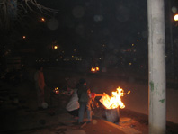 Sau phút yên lặng tuyệt đối, nghe ngoài đường xe honda chạy rầm rập, thanh niên chở nhau đi xem pháo bông ở cầu Trường Tiền trở về nhà. Tôi dắt xe ra trở về, khi các gia đình bắt đầu đốt vàng mã. Phố Bạch Ðằng ấp ủ những khấn nguyện đầu năm với “thoi vàng gió rắt tro tiền giấy bay” trong gió khuya lạnh căm.