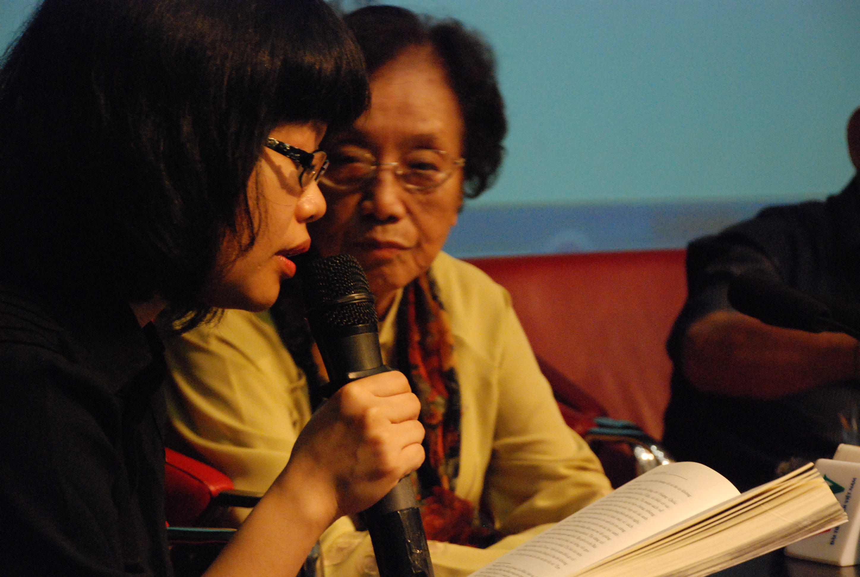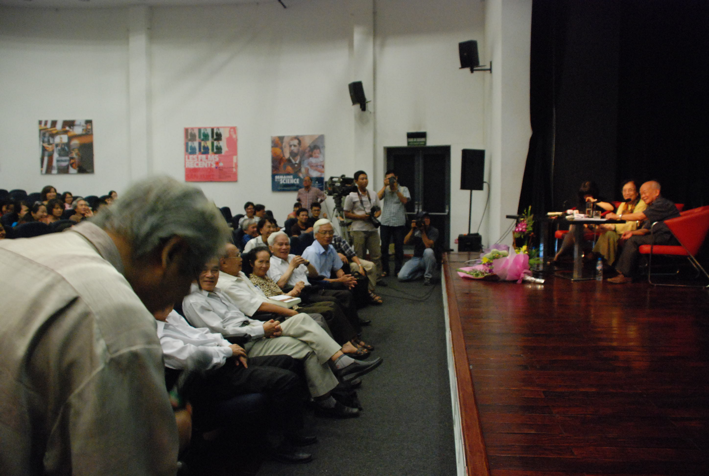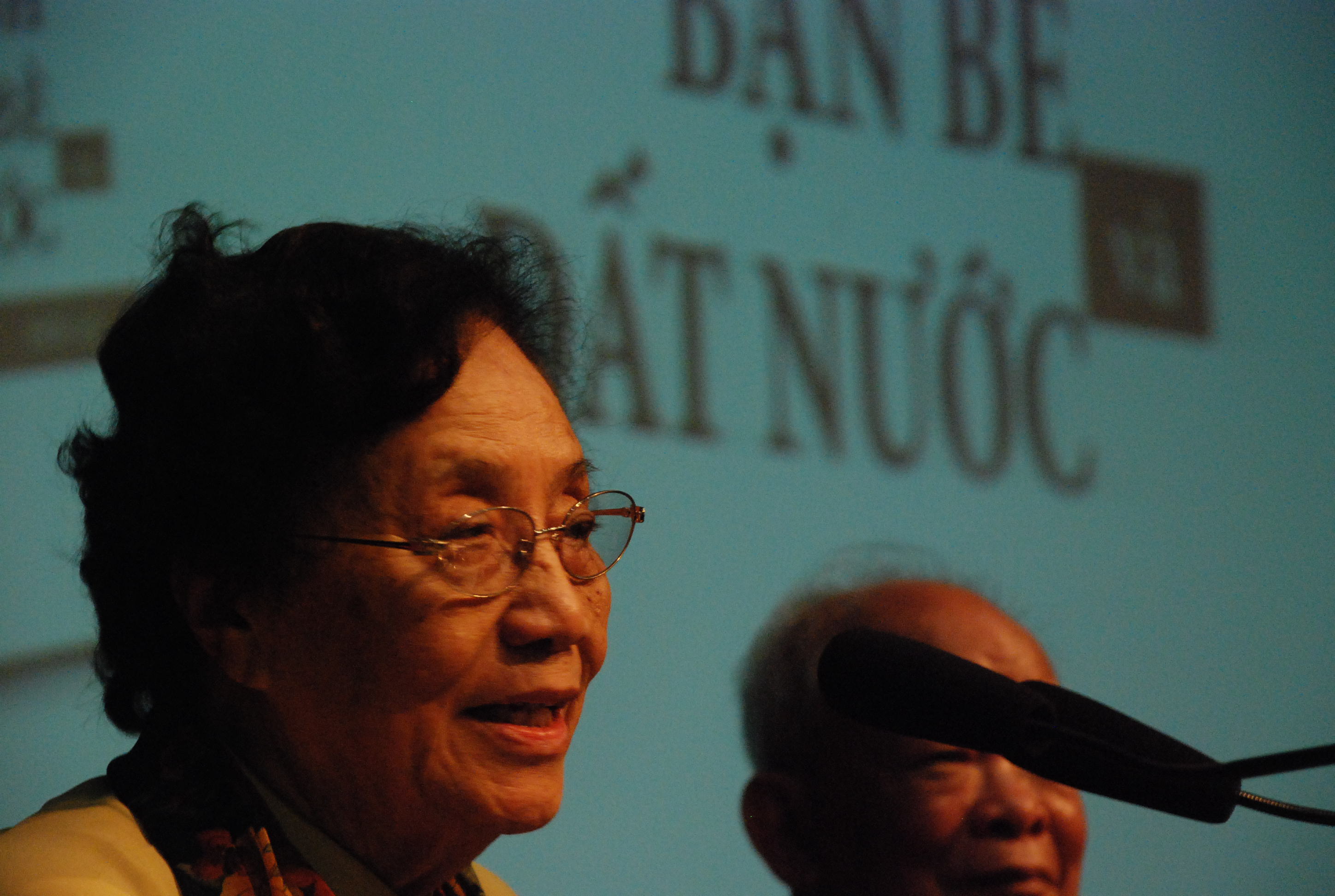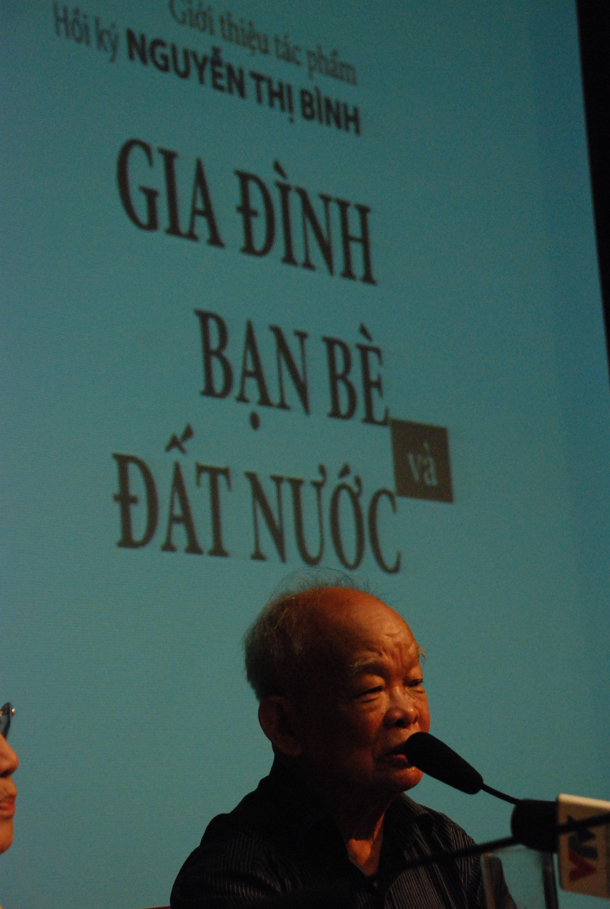 Lễ ra mắt hồi ký của bà có sự hiện diện của nhiều nhà khoa học như GS. Hoàng Tụy, GS. Chu Hảo, nhà nghiên cứu Phạm Chi Lan, TS. Nguyễn Quang A, nhà giáo Phạm Toàn, PGS. Trần Ngọc Vương,… Trong ảnh: nhà nghiên cứu Nguyễn Khắc Mai đang cúi đầu thể hiện sự kính trọng đối với bà Nguyễn Thị Bình.