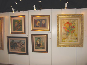 ![]() Nhóm tranh Việt Nam tại triển lãm đấu giá. Nhiều người Singapore nghi ngờ về tính chân bản của những tác phẩm này. |
