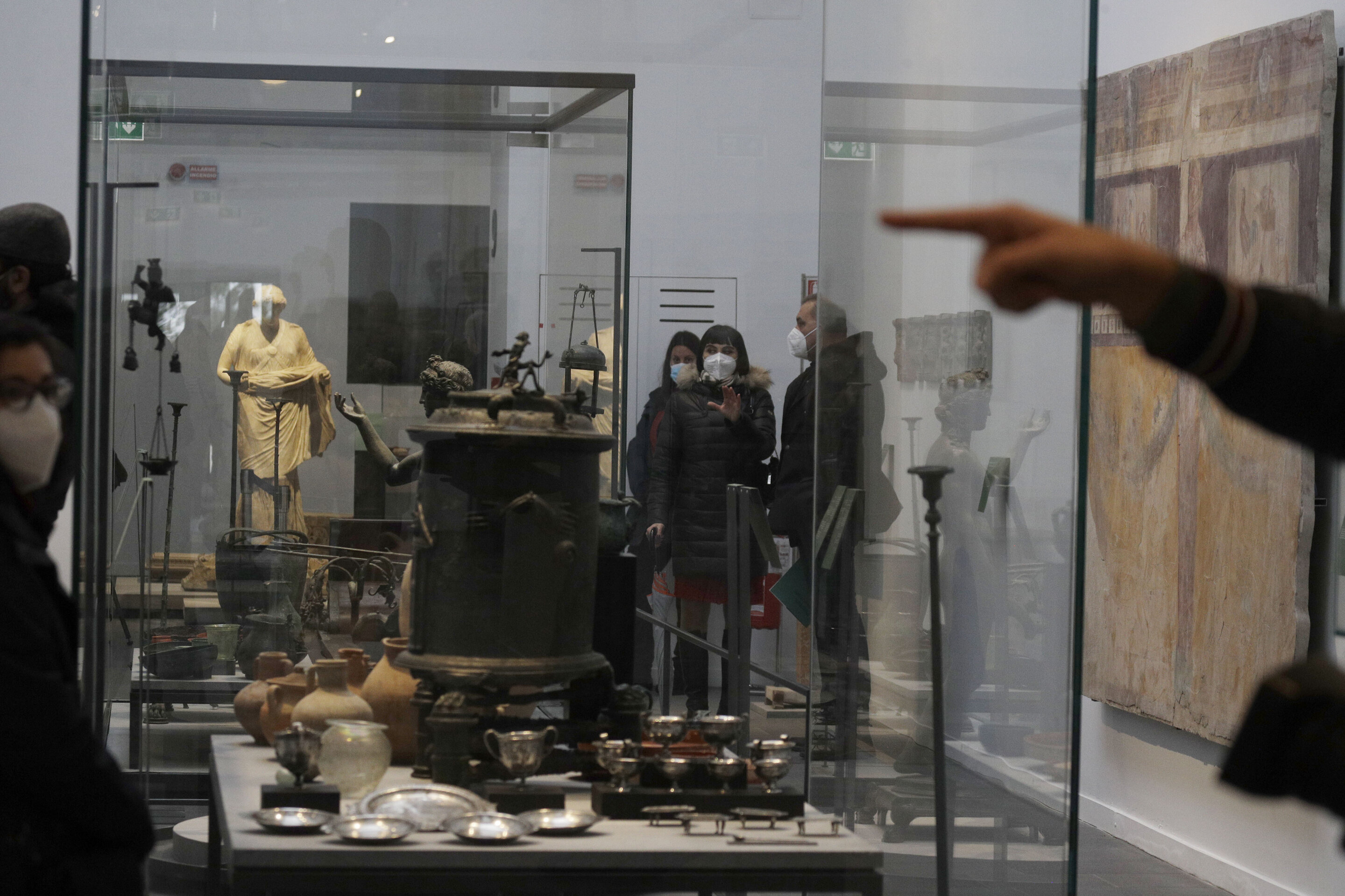 Các nhà báo tới thăm bảo tàng Antiquarium ở Pompeii. (AP Photo/Gregorio Borgia).