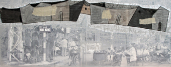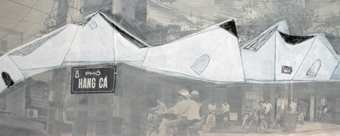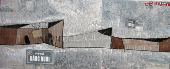 Nhà cửa lô xô chuyển động theo hàng ngang với các gam màu tường vôi, vàng rơm, xen lẫn trắng- nâu- ghi xám, nền nã, tinh tế. Nhìn xa chúng giống như các bức tranh trừu tượng hiện đại, tạo ấn tượng thị giác mới lạ, êm dịu. Nhìn gần là cảm giác sống động của 36 phố phường với các hình ảnh đan lồng nửa hư nửa thực, đây đó hiện lên những người bán hàng rong, biển hiệu, cửa hàng, cột điện… Tất cả dào dạt thông tin, nối liền từ ký ức sang hiện tại trong một cách nhìn mới và lối biểu đạt mới của ngôn ngữ nghệ thuật có pha trộn thêm các yếu tố của pop- art và graffiti.