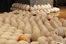 Những quả trứng, sắp đặt trong triển lãm Tứ Pháp của Đào Châu Hải. Trong triển lãm, nhà điêu khắc đổ thạch cao 2000 quả trứng bày xung quanh bốn pho tượng Tứ pháp và cho người xem tha hồ vẽ vời lên đó. Đối với ông, đó là những hình tượng mang tính cách số phận, sự hoang mang và vô vọng của cá thể trong đời sống xã hội.