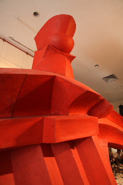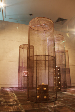 ![]() Trong một góc triển lãm, nghệ sỹ sắp đặt năm trụ cột đan bằng thép, đặt trên một mặt nền cấu trúc cũng bằng các trụ thép phủ sắt. Bên trong mỗi cột trụ là cốt đất bốn mặt gắn trứng, có lẽ nhằm mô phỏng các building cao tầng hoặc những ngôi tháp. Đào là người nhạy cảm với những phát triển hiện đại, và nhìn thấy bản chất mong manh cốt lõi bên trong của mỗi vấn đề mà có vẻ ngoài dường như là rắn chắc, vĩnh cửu của chúng, cũng như cái cảm giác rõ rệt mà vô hình về sự phát triển không kiểm soát của trí tuệ sẽ dẫn xã hội đến đâu.