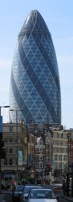 Ngày nay Norman Foster và Cộng sự triệt để sử dụng mối liên kết chặt chẽ giữa hệ thống máy tính điều khiển và quy luật vật lý cơ bản, chẳng hạn như sự đối lưu không khí nhằm tạo ra một tổ hợp chặt chẽ, thông minh hiệu quả cho công trình như nhà số 30 phố Mary- Hay còn gọi là “Quả dưa chuột” vì hình dáng độc đáo của nó. Toàn bộ mặt đứng của công trình với thiết kế đặc biệt, độc đáo đã có thể tự làm mát và làm ấm không khí mà không cần bất cứ một năng lượng nhân tạo nào.