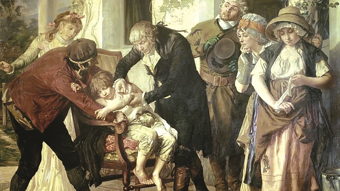 Tranh tả Edward Jenner (1749-1823) chích ngừa bệnh đậu mùa vào năm 1796. Nguồn: Christophel Fine Art/Universal Images Group/Getty Images