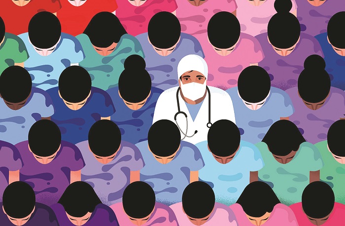 Còn ngay lúc này, trong kỷ nguyên công nghệ thông tin, người ta có thể theo dõi, nắm bắt con số người tử vong, số case thoát khỏi lưỡi hái tử thần và nắm bắt hành trình riêng tư của người phơi nhiễm trong cộng đồng mình sống với sự cập nhật nhanh nhất, đến từng giây từng phút, bỏ qua mọi quyền riêng tư. Những bãi chiến trường là các bệnh viện, nơi con người phải khoác những bộ đồ bảo hộ, bịt kín toàn thân như hình ảnh các phi hành gia bước xuống hành tinh lạ, đề phòng kẻ thù “vô hình” xâm nhập và sao chép, nhân bản.