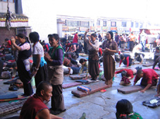 Thế kỷ 7, công chúa Văn Thành nhà Đường kết hôn với vua Thổ Phồn Tây Tạng là Tùng Tán Can Bố. Nhiều di tích của nàng còn ở ngôi chùa Đại Thiều tự, nằm ở cuối con phố Bát Giác. Con phố này là một chợ đi bộ bán thập cẩm ngũ vị đồ văn hóa, đời sống dân núi cao. Giày da, lông thú, chăn nỉ, dao cong, cung tên, trang sức và những bộ yên cương với những vòng lục lạc tuyệt đẹp, tranh Thangka với nội dung tôn giáo và tinh thần Tây Tạng. Chợ này vòng quanh ngôi chùa Đại Thiều. Người Tạng có lẽ dành cả ngày đi lễ, họ xếp hàng rất lâu mới vào được nội tự, nên du khách khó mà vào. Nhiều người trải khăn đầy quanh chùa bái vọng. Tôi thấy nhiều tăng lữ ngồi sát ngũ cốc và hạt quý vào các đồ thờ tự không biết để làm gì. Khu chợ có một hiệu sách lớn về Tây Tạng, tôi thấy nhiều người Tạng vào xem và mua sách. Người Tạng có chữ riêng và rất có văn hóa. Tôi cũng mua vài quyển sách về lịch sử Tây Tạng, phép song tu nam nữ, Mandala, quan niệm sống chết… được giải thích qua tranh Thangka, tức là hội họa Tây Tạng trên các tấm vải về toàn bộ tinh thần Tây Tạng.