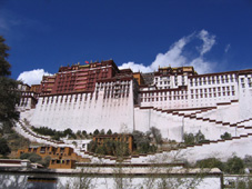 Từ tờ mờ sáng, những người Tạng đã đi lễ vòng quanh các ngôi chùa. Họ vừa tụng Kinh, vừa xoay một con lắc, hoặc xoay dãy chuông quay đặt vòng theo các bức tường. Có người vừa đi vừa quỳ rồi bò xoài ra đất, tay họ phải đeo đôi guốc gỗ. Từng đoàn người cầm các bình bơ và mỡ động vật chiếu vào những cây đèn trong chùa. Mùi mỡ cháy rất nồng nặc. Người Tạng sống trong những căn nhà đất đắp, hoặc xây bằng đá, một hoặc hai tầng. Trên gờ tường xếp các cây gỗ làm dầm ngang rồi lấy một loại đất có trộn gì đó như đất sét và đập mịn, cứng như sành, làm trần. Nên trên nóc nhà có một sân rộng khá sạch nhẵn. Chỉ có các bộ cửa bao giờ cũng được chú trọng, chạm khắc và nạm đồng cầu kỳ. Chùa Tây Tạng cũng phát triển theo cách thức xây dựng trên, nhưng quy mô thì lớn không tưởng tượng. Potala là cung điện, chùa trung tâm được xây từ thế kỷ 7, ở nam thành phố Lhasa, đến thế kỷ 17 được Đạt lai Lạt ma đời thứ 5 đại trùng tu lại. Thời cực thịnh ở đây có đến 10 nghìn Lạt ma. Ngôi chùa nằm trên ngọn núi đá Potama ( Phổ Đà ) cao khoảng 200m, bản thân lầu chính ngôi chùa cũng cao đến 117m, trong đó có nhiều mộ tháp, đồ thờ tự quý và 20 vạn tượng Phật. Để leo lên đây cũng là cả vấn đề, phải mua vé trước một ngày tới 100 tệ, ( giá chợ đen là 400 ), và cũng chỉ được xem từng phần, trong chùa công an và bộ đội canh gác rất nghiêm. Vòng quanh chân núi có lẽ phải đến 4km, có nhiều dãy chuông quay dài, thế mà tôi thấy hàng đoàn người ngày nào cũng đi vòng quanh vài vòng. Từ trên cao nhìn xuống thành phố Lhasa tuyệt đẹp trải dài đến tận các dãy núi, nhấp nhô các tự viện, dưới bầu trời xanh như ngọc.