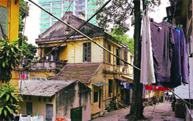 | Một khu biệt thự cũ đang là chỗ ở của nhiều hộ dân tại phố Ngô Quyền |