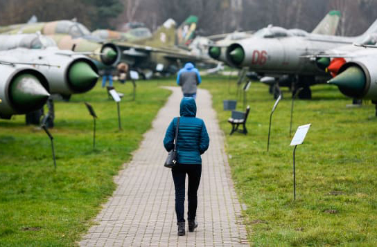 Du khách tới thăm bảo tàng máy bay ở Ba Lan, nơi lưu giữ những mẫu chiến đấu cơ cổ nhất ở châu Âu. Ảnh: Omar Marques/SOPA Images/LightRocket/Getty Images.