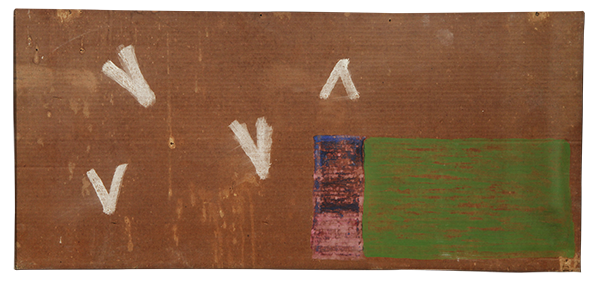 Nhưng ở một bức tranh khác chỉ có vài vạch chéo đứt quãng, ông vẽ trên cảm hứng từ bài thơ lẻ của ông: “Tôi có trăm xu /tôi đi tám phố /mua con đường dài / vừa đi vừa nghỉ /mua năm xu ánh sáng /sống ghẹ mặt trời /mua năm xu chơi vơi /mủi lòng viên đạn /mua năm xu mưa lay phay /trang hoàng dậu sắt …