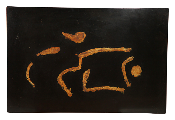 Một bức khác, trên mặt tranh có nhiều nét đứt, ngang, dọc và ông viết bài thơ ngắn nhất của ông: “Đêm Virgule”, 2 chữ, 3 âm tiết, đêm dấu phẩy.