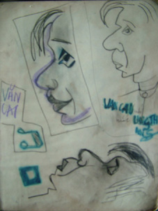 Ngoài các bức ký họa có bút tích, lão họa sỹ Lưu Ly còn chỉ cho tôi những bức tranh của họa sỹ Bùi Xuân Phái vẽ không đề bút danh về họa sỹ Hoàng Lập Ngôn với quán café Bồ Câu, họa sỹ Hoàng Tích Chù… Đặc biệt có một bức phác thảo 3 gương mặt của nhạc sỹ Văn Cao. Gương mặt tác giả quốc ca Việt Nam phân thân thành 3 tâm trạng luân hồi trên trang giấy: Văn Cao ưu tư, nghiêm nghị. Văn Cao vui tươi, mắt môi phím nhạc. Văn Cao chìm đắm sáng tác.