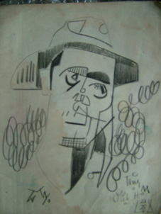 Lại thêm một ký họa, không phải tự họa, mà đây là khuôn mặt ông Việt Hồ hiền hậu dưới vầng trán quắc thước do Lang Thang vẽ chì màu năm 48! Vẫn là “hắn- Sipi” vì nét bút, gam màu xa vắng chân thành không lẫn vào đâu được!