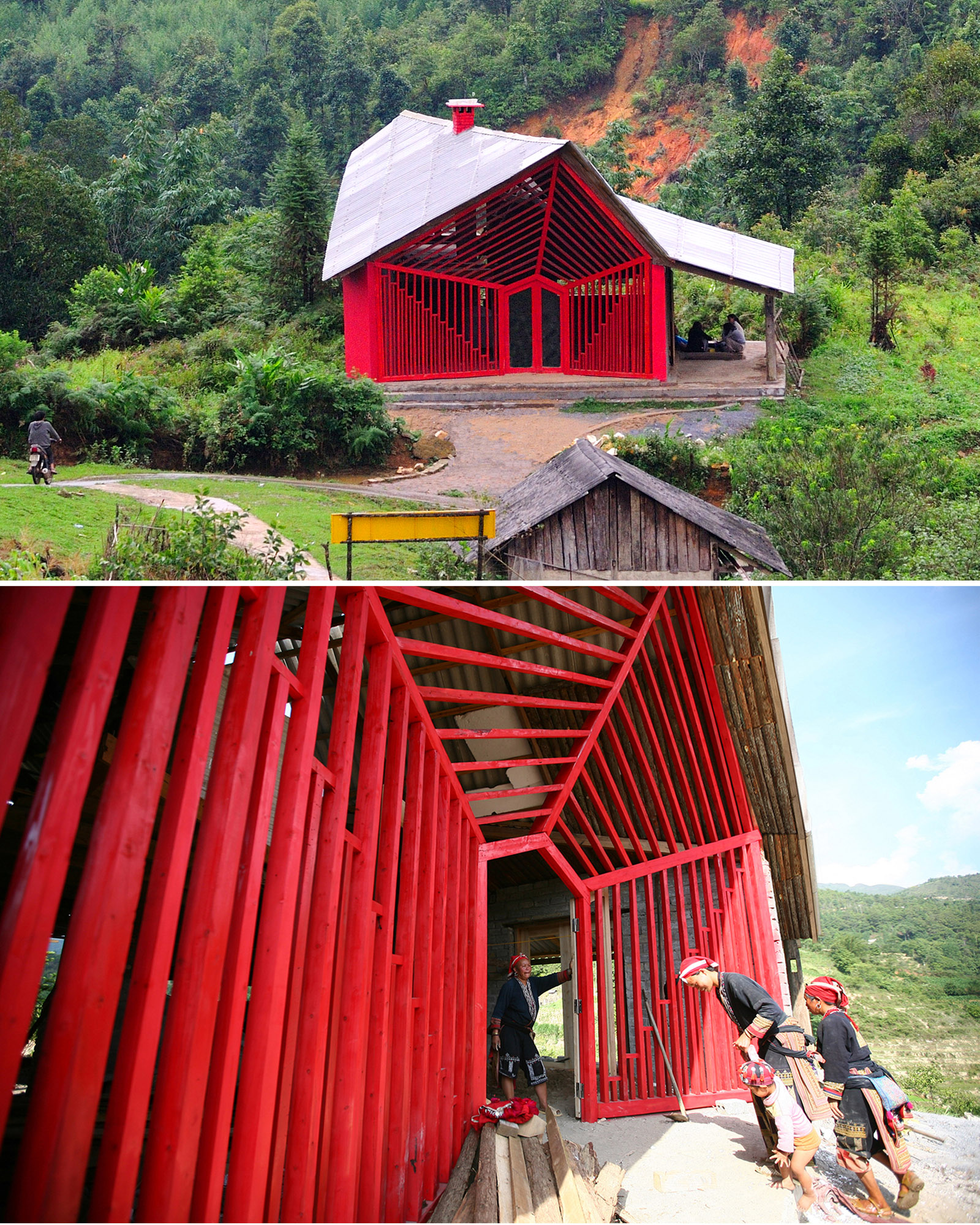 “Tôi tin rằng mỗi vùng quê đều sở hữu những giá trị to lớn về văn hóa, thiên nhiên và lịch sử vốn chưa được coi trọng tương xứng. Trong thiết kế của chúng tôi, công nghệ hiện đại đi đôi với phương thức xây dựng và vật liệu địa phương, chúng tôi hy vọng mang đến một cái nhìn đương đại cho kiến trúc bản địa. Và, trên hết, công trình phải tự duy trì được sức sống của mình, bởi nó chỉ có giá trị khi được người dân địa phương sử dụng.“ – KTS Hoàng Thúc Hào. Trong ảnh: Nhà cộng đồng Tả Phìn.