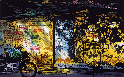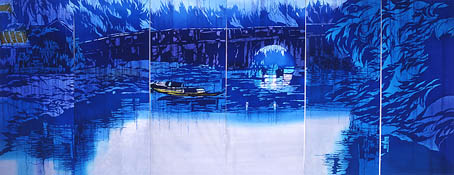 Điều đặc biệt là tất cả những tác phẩm này được tạo ra bằng kỹ thuật in katazome, một kỹ thuật độc đáo và tinh xảo, vốn được dùng để làm ra những tấm áo kimono rất bền màu. Kỹ thuật này đã giúp Toba Mika tạo nên những bức tranh khổ lớn đến 5X3m, căng trên những tấm khung ghép nối với nhau bằng các bản lề nhỏ, tựa như bức bình phong.