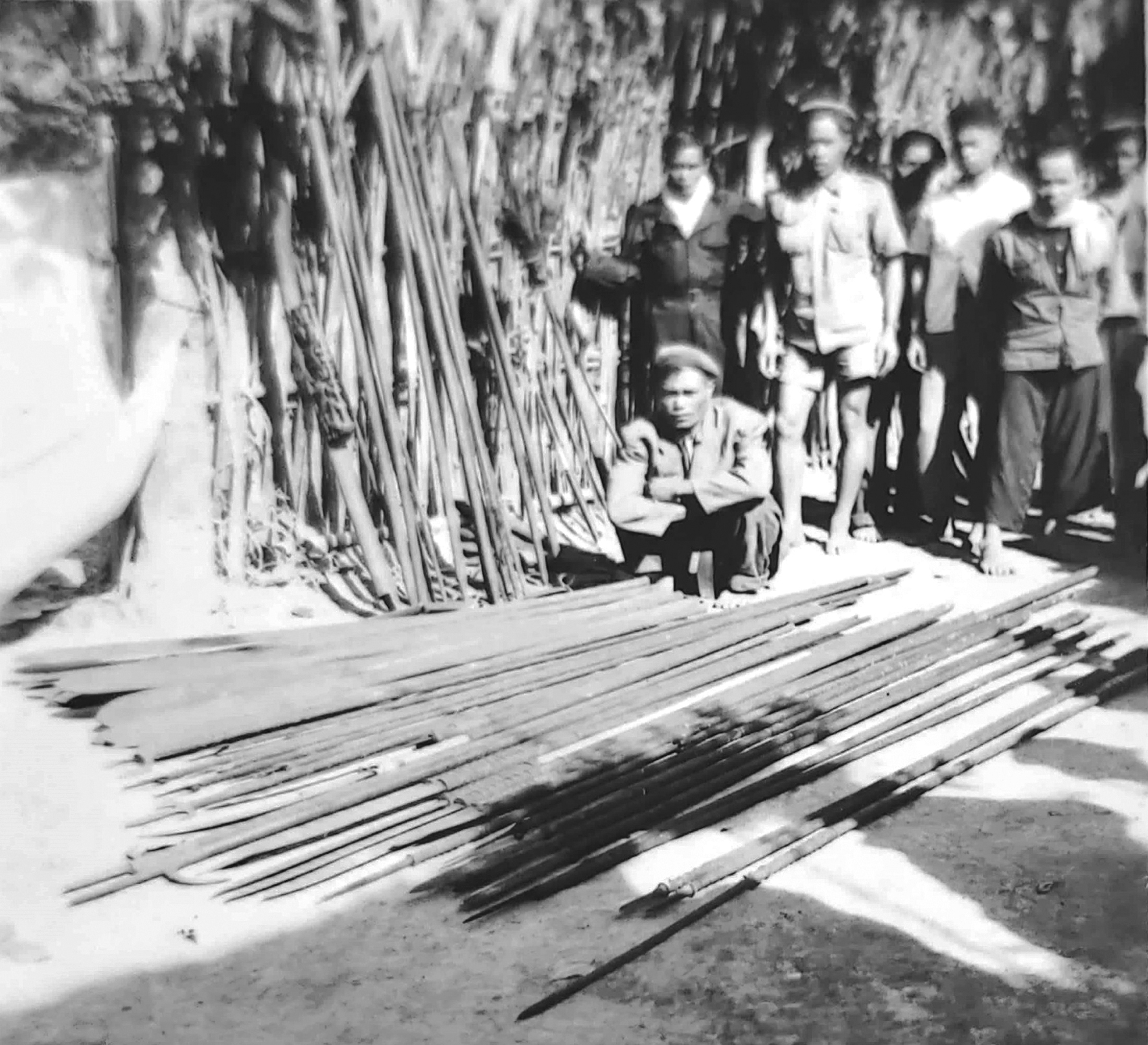 Binh khí tìm thấy trong ngôi đền Sop Madronhay ngày 21-12-1957. Ảnh: Tài liệu TTLTQG II, TP.HCM.