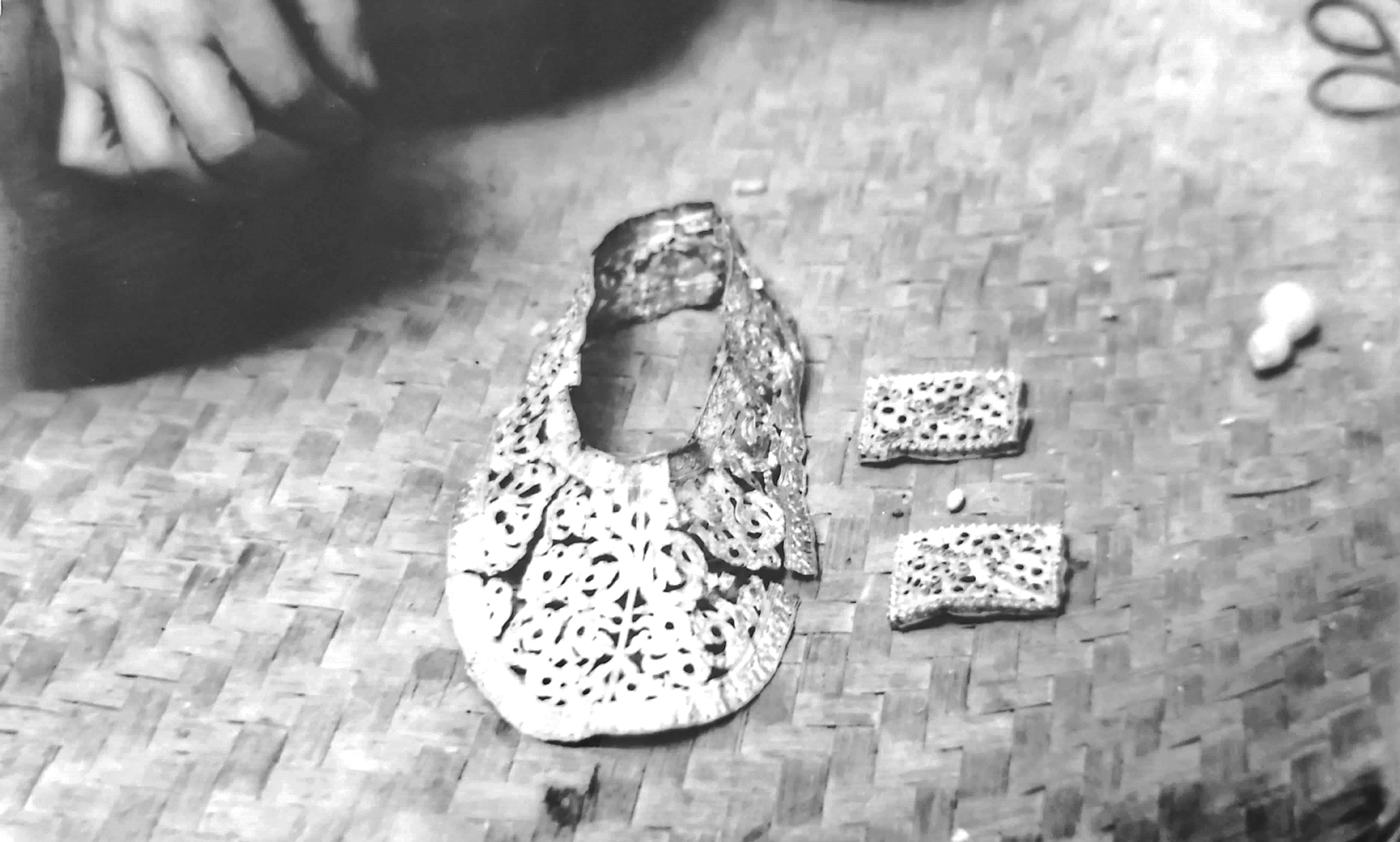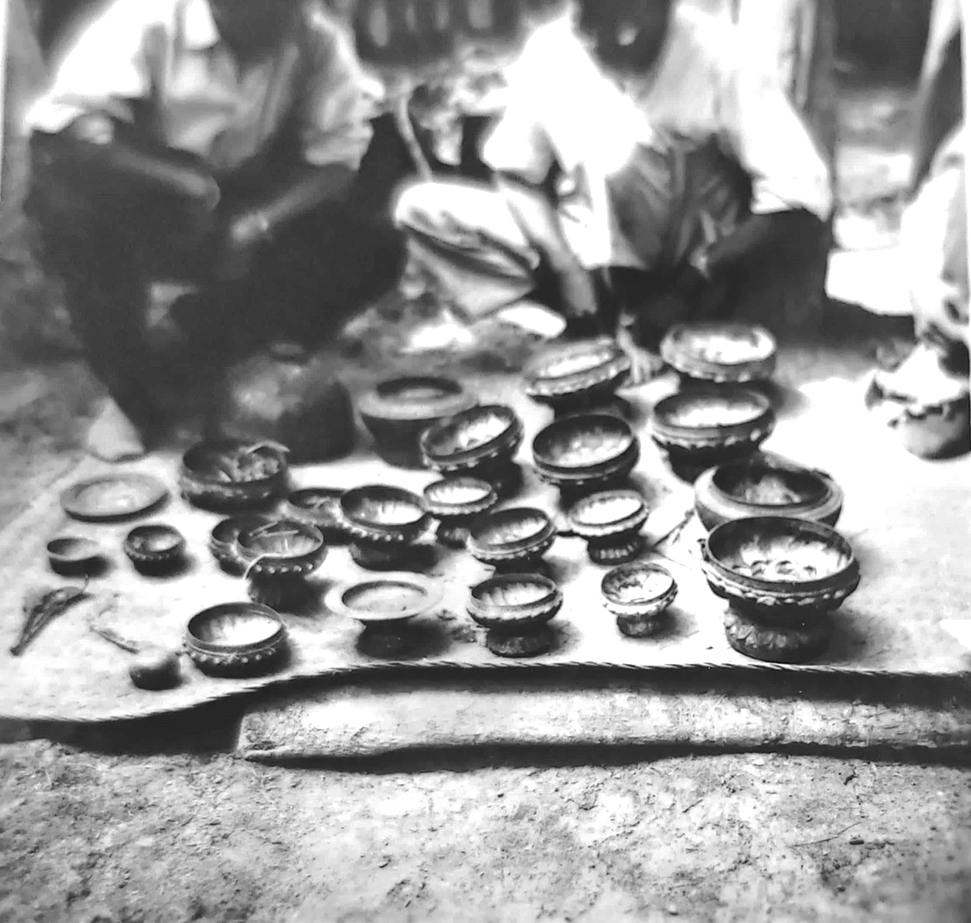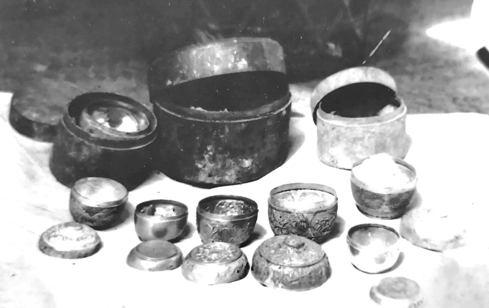 Khay, hũ đựng bằng bạc có hoa văn Chăm. Ảnh: Tài liệu TTLTQG II, TP.HCM.