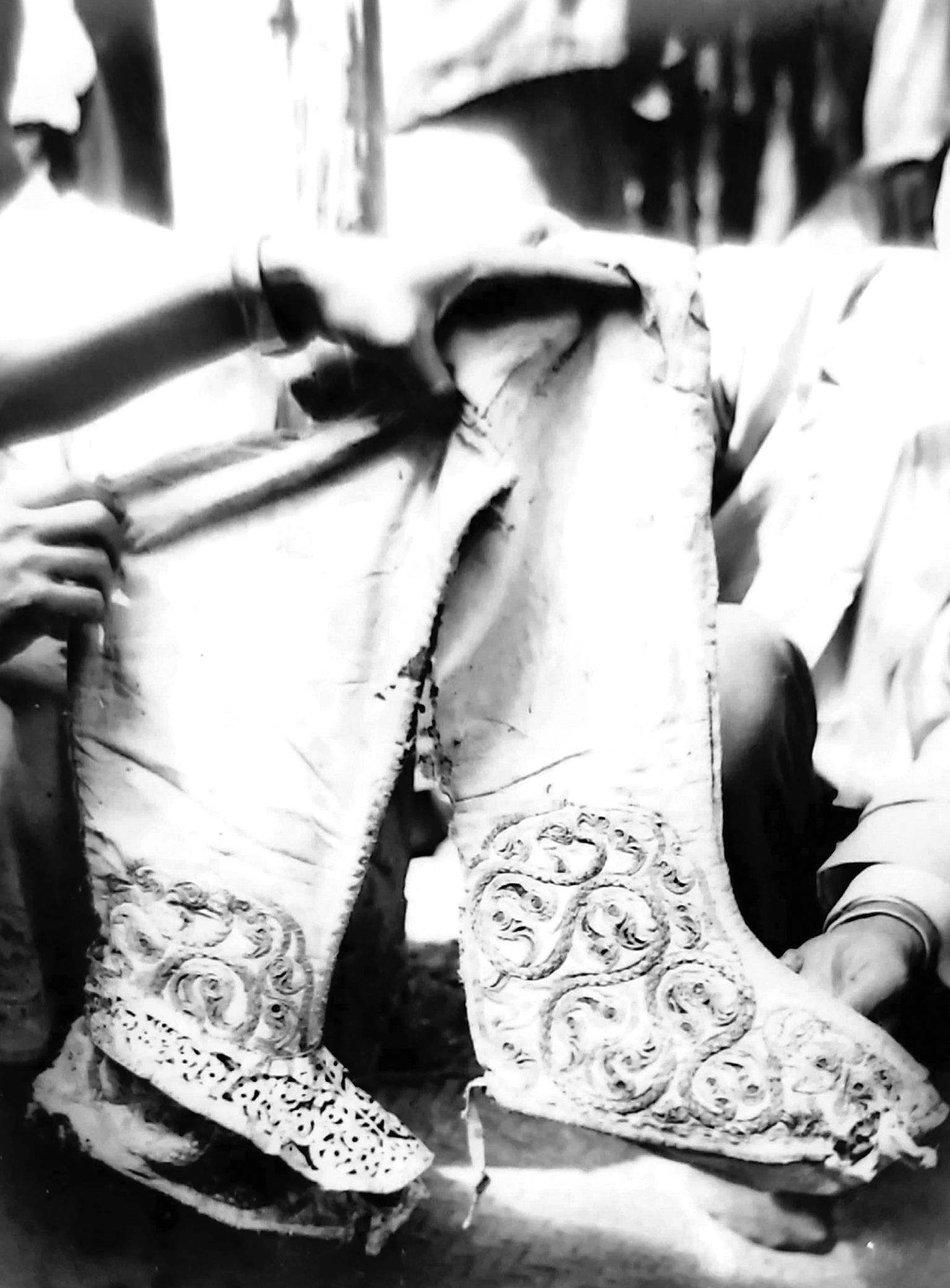 Nhiều vải vóc thổ cẩm được dệt theo kỹ nghệ truyền thống Chăm còn tốt, nhưng cũng có những thứ đã cũ và nát qua thời gian.